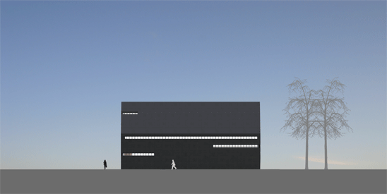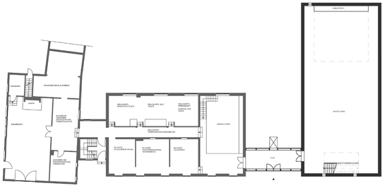 mein entwurf konzentriert sich auf den durch den abriss des dreigiebeligen anbaus freigewordenen bauplatz und sieht einen schlichten und monolithischen körper vor. dieser verbindet sich mit einen glasgang zum böhm-bau und beherbergt einen aufzug. die fassade besteht aus quadratischen schieferplatten, die sich auf wand- und dachflächen ausbreiten. um natürliches licht einzulassen habe ich streifenfenster in den monolithischen körper eingesetzt. der grundriss konzentriert sich auf das berühmter telgter hungertuch (7.40x 4.40m), das im jahre 1623 entstand. das hungertuch habe ich an der hinteren giebelwand positioniert, um die strengen ausstellungvorschriften einzuhalten. im keller befinden sich die notwendigen nebenräume.